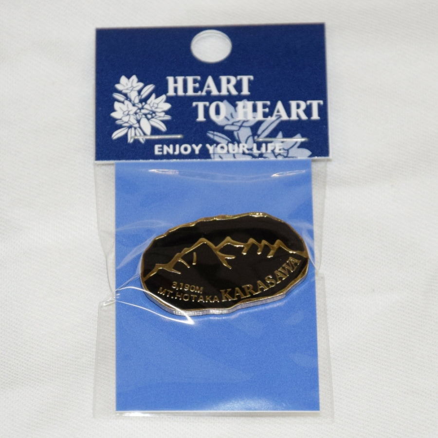涸沢ヒュッテで販売中。KARASAWAピンバッチ。