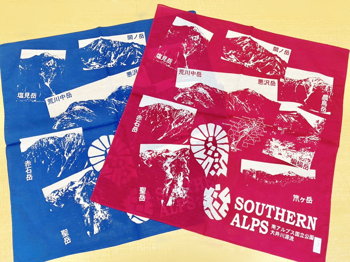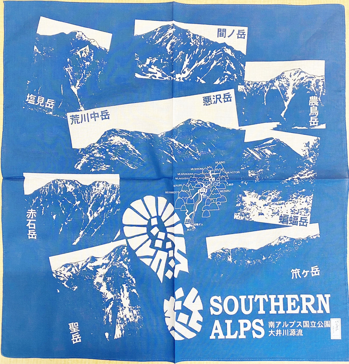 南アルプスの壮大な山々が描かれたバンダナになります。
